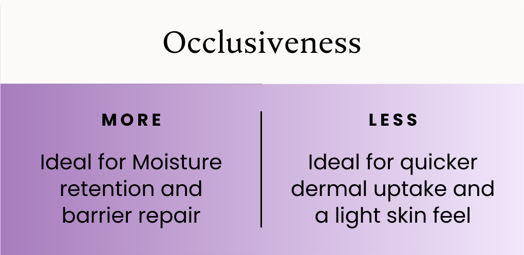 Richer and more occlusive carriers such as Avocado, Pomegranate Seed Oil, or Castor Oil slow evaporation and increase contact time. These are particularly beneficial for dry or compromised skin and for formulations where extended localized exposure is helpful.